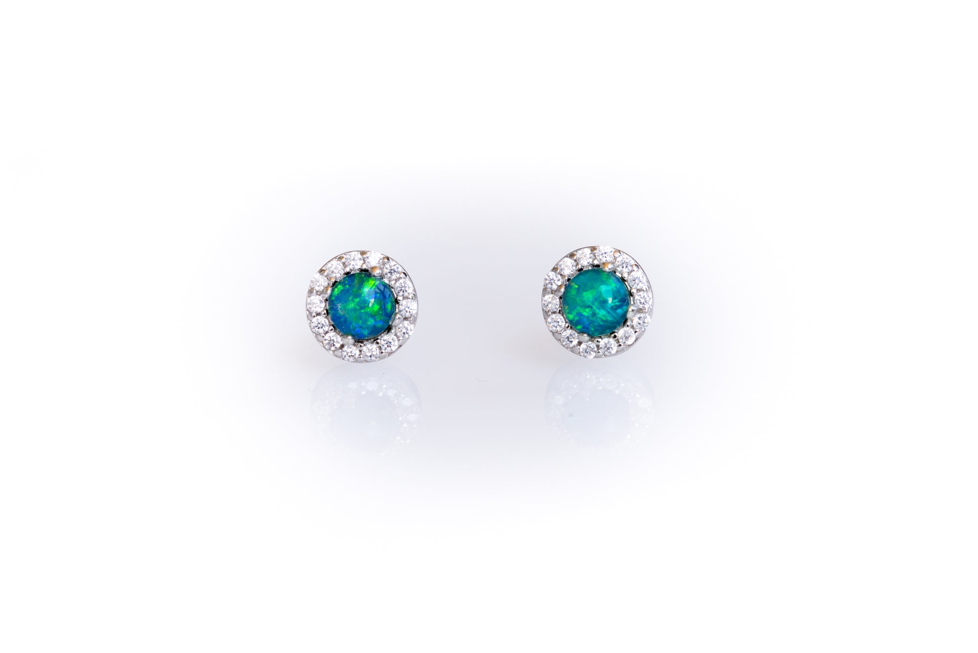 Australian Sparking Green Blue Triplet Opal Earrings in Sterling Silver White Gold-Plated, Halo Cluster Design